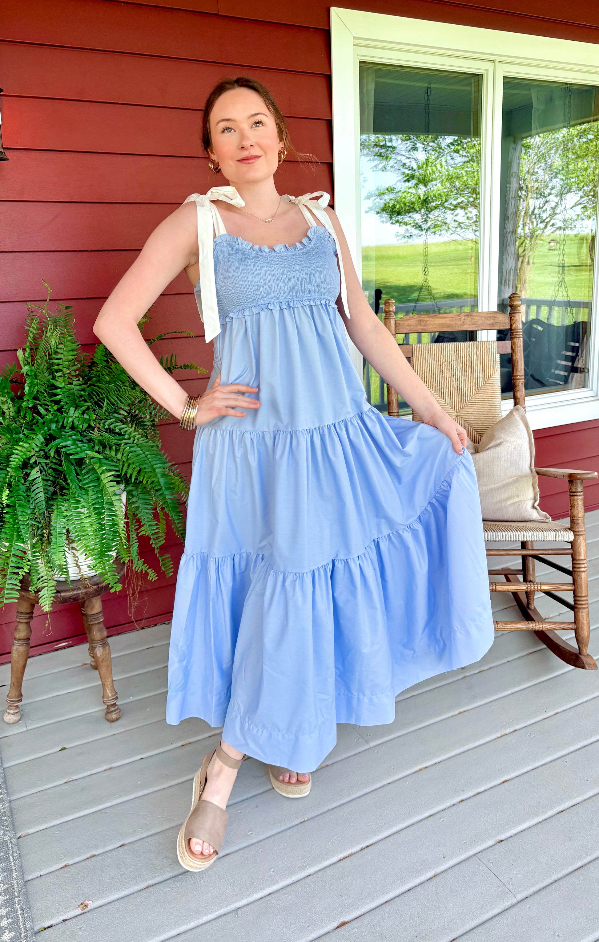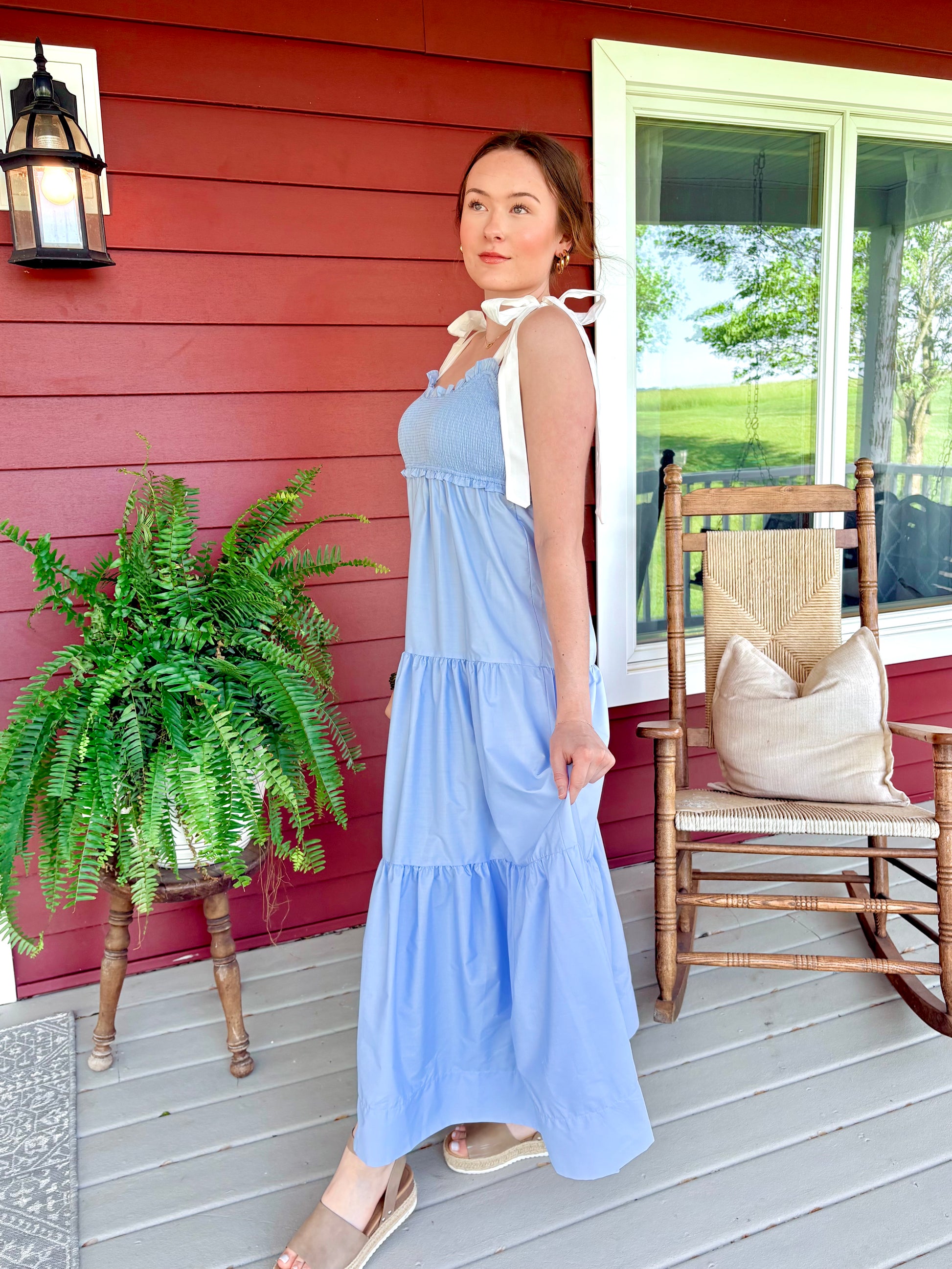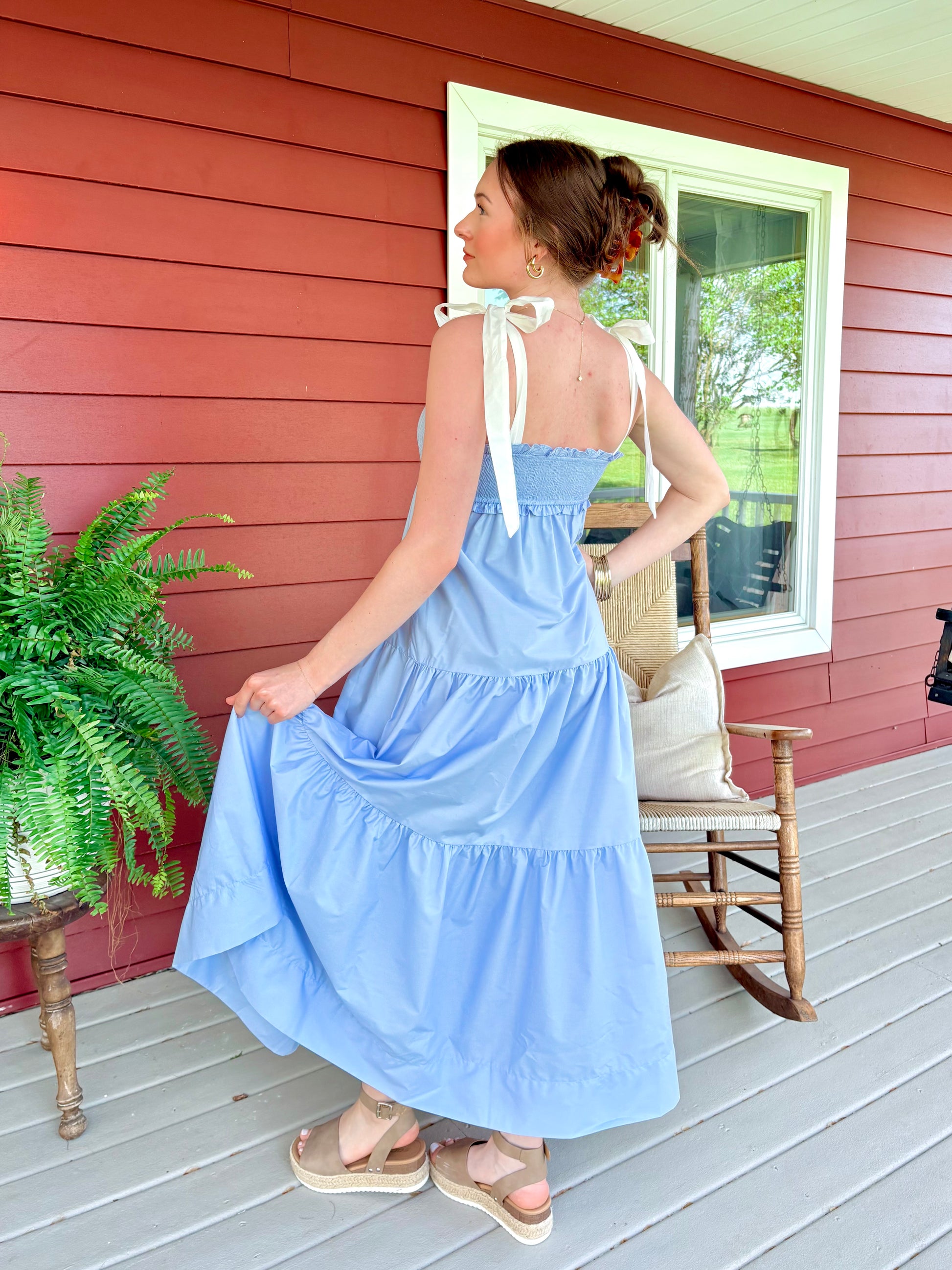 Lindy Tie Maxi Dress | Light Blue & Cream