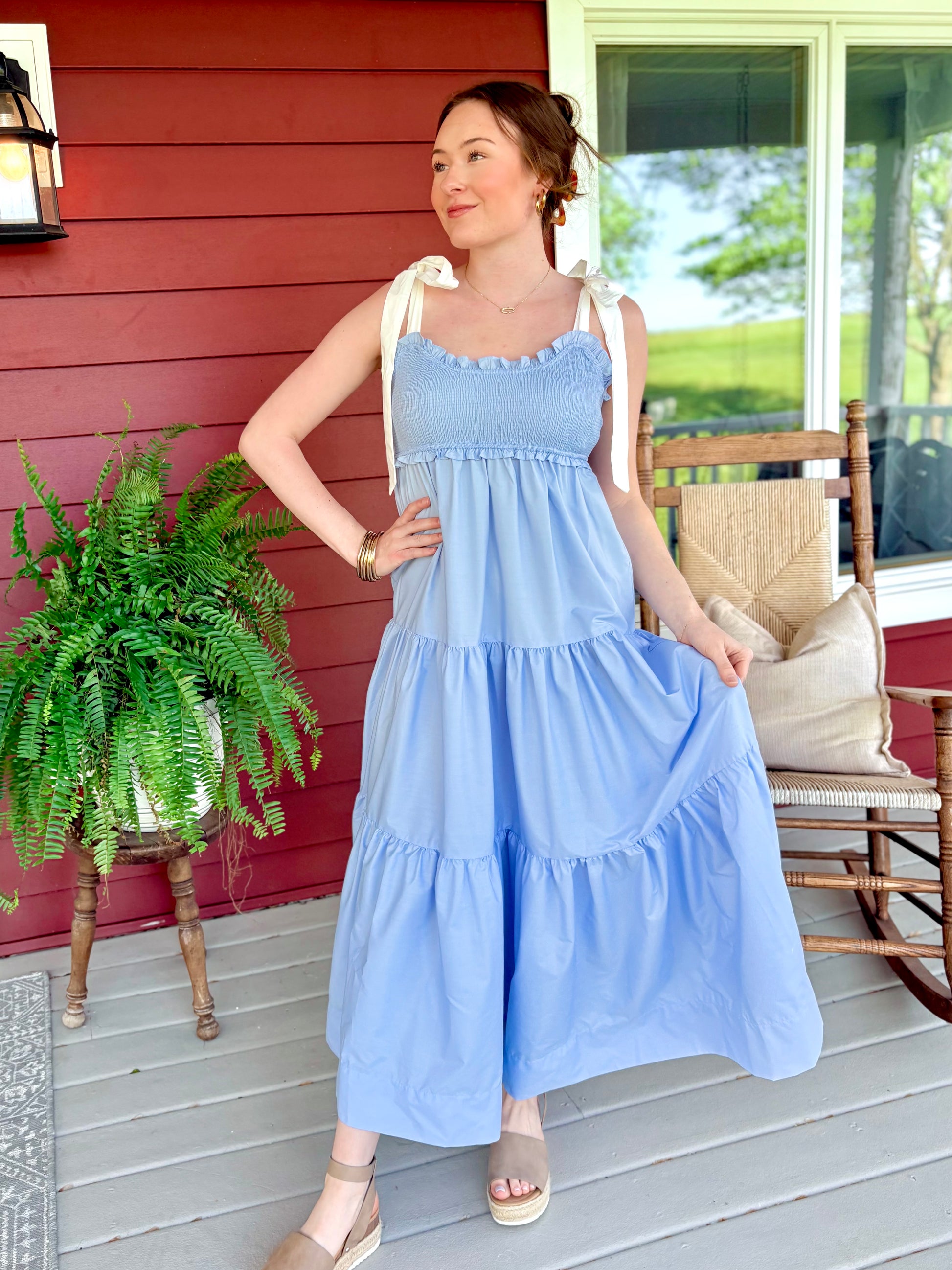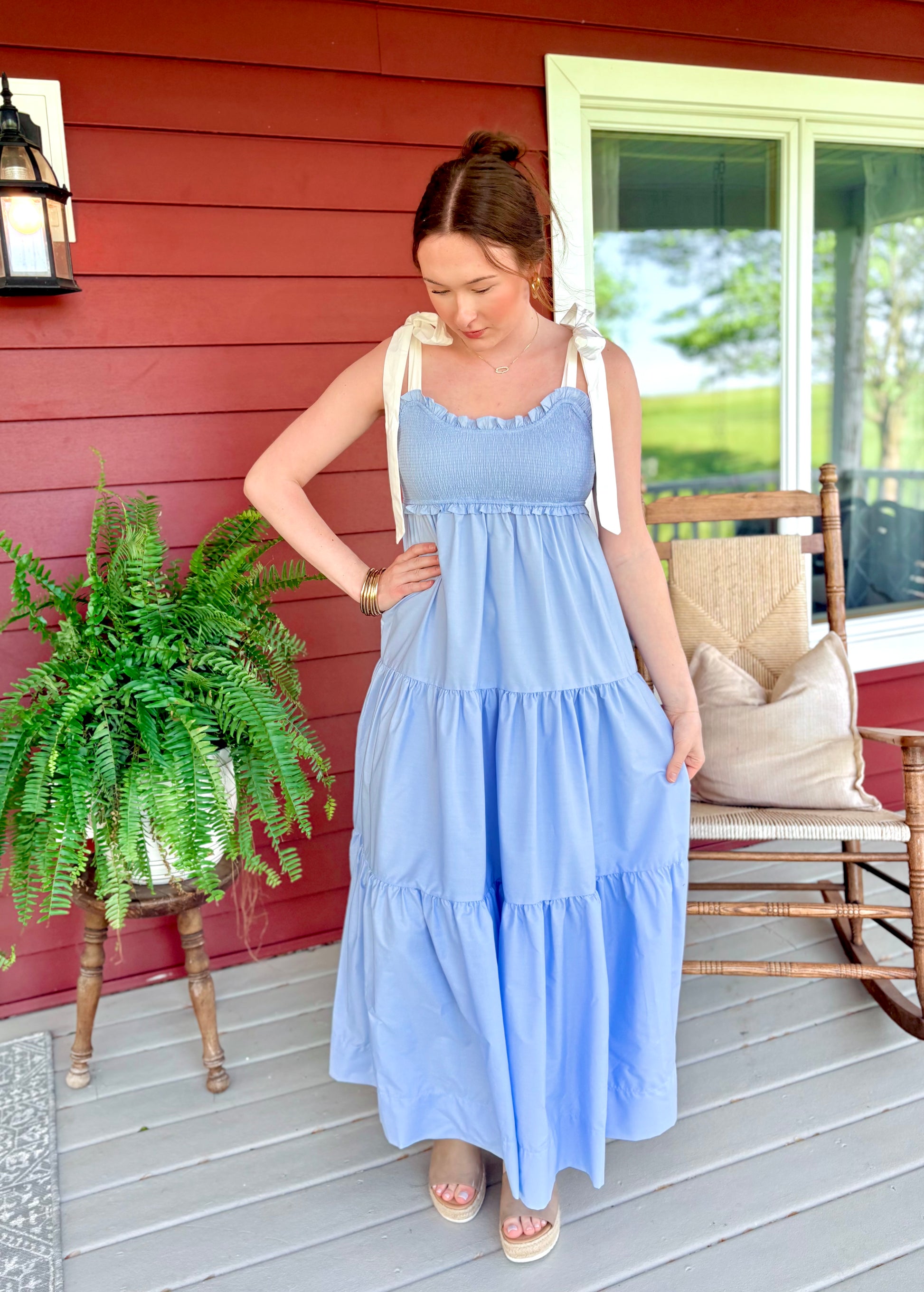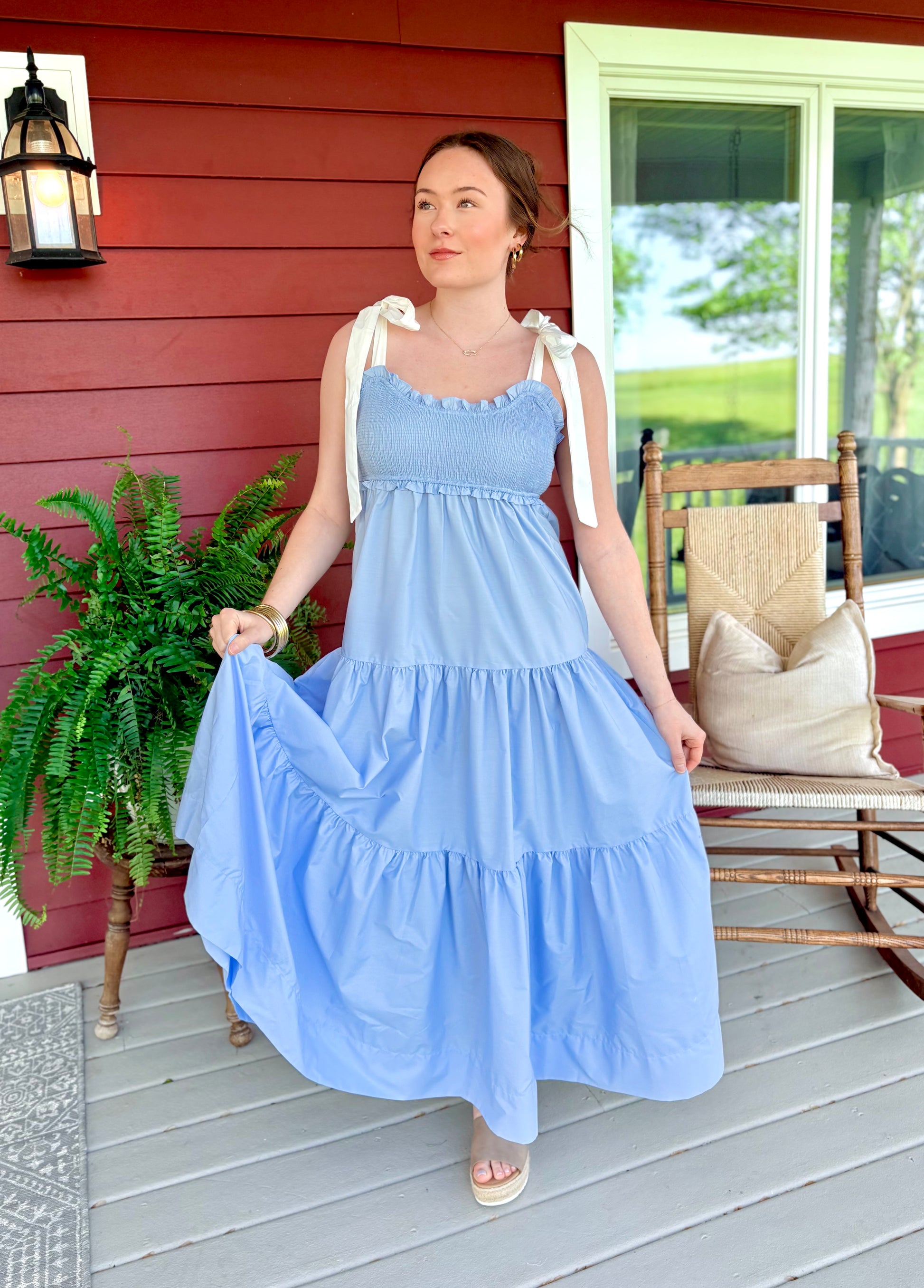 Lindy Tie Maxi Dress | Light Blue & Cream